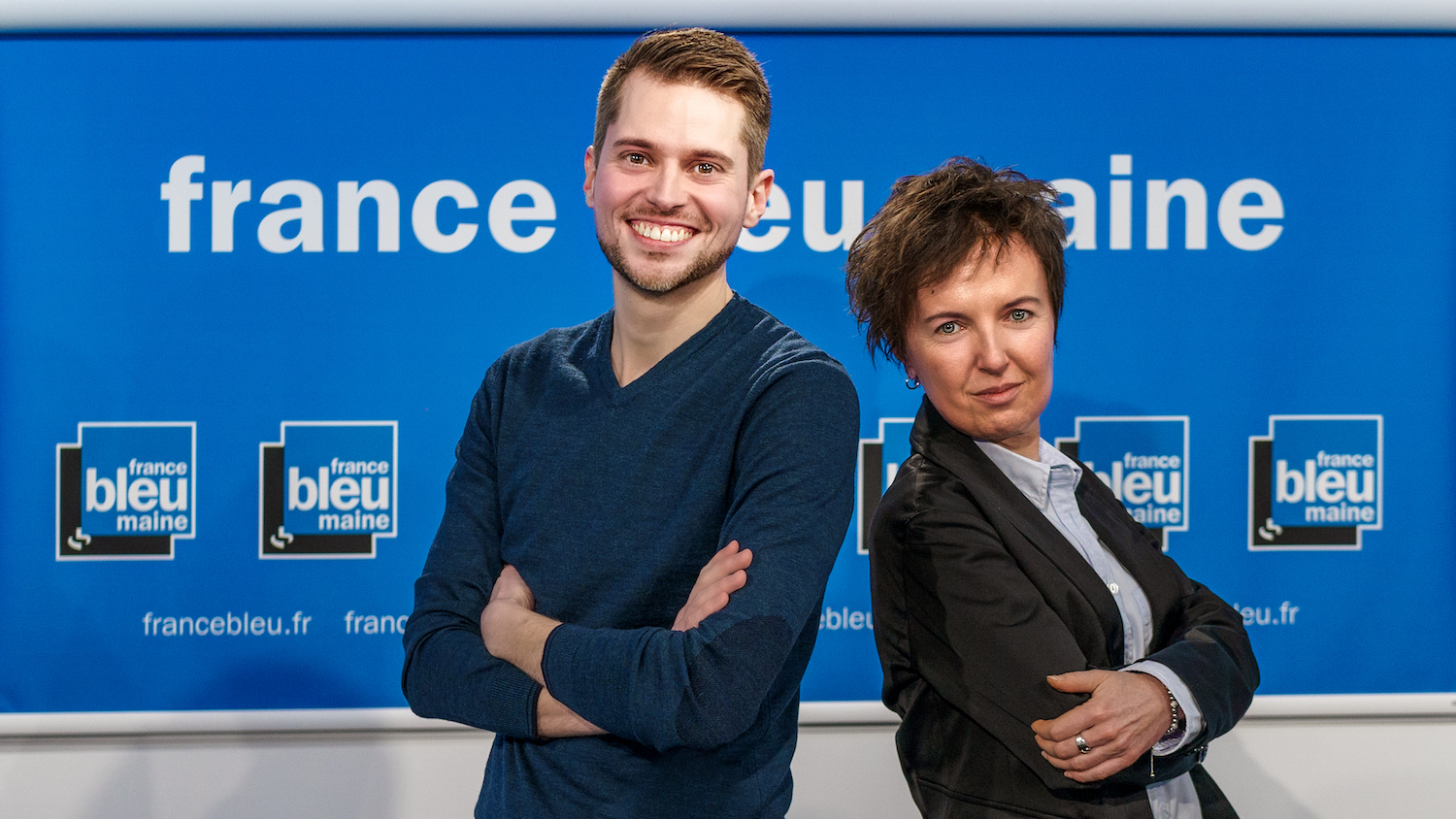 La matinale "France Bleu Maine Matin" est présentée par Mathieu Doucet, animateur) et Christelle Caillot (journaliste)
