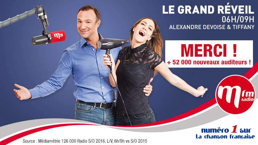 MFM Radio progresse fortement sur la durée d’écoute. Les auditeurs restent de plus en plus à l’écoute de la station pour atteindre une DEA de 89 minutes par auditeur, soit + 17 minutes gagnées sur 1 an. Pour la 2e saison, "Le Grand Réveil" avec Alexandre Devoise et Tiffanie fidélise 52 000 nouveaux auditeurs. MFM Radio a également renforcé son équipe depuis septembre avec l’arrivée de Cyril Féraud (l’animateur télé de Slam) tous les jours de 12h à 13h pour un jeu "Midi Avec Vous'. La nouvelle émission de Cyril Féraud permet à cette tranche de progresser de 14%.
