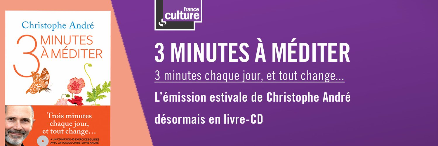 Psychiatre spécialiste des troubles anxieux et dépressifs, Christophe André est l’auteur de nombreux best-sellers dont "Méditer jour après jour". Il a animé, durant l’été 2016 sur France Culture, les chroniques "3 minutes à méditer" qui composent ce livre-CD disponible au prix 19€90 aux Editions L'Iconoclaste / France Culture.