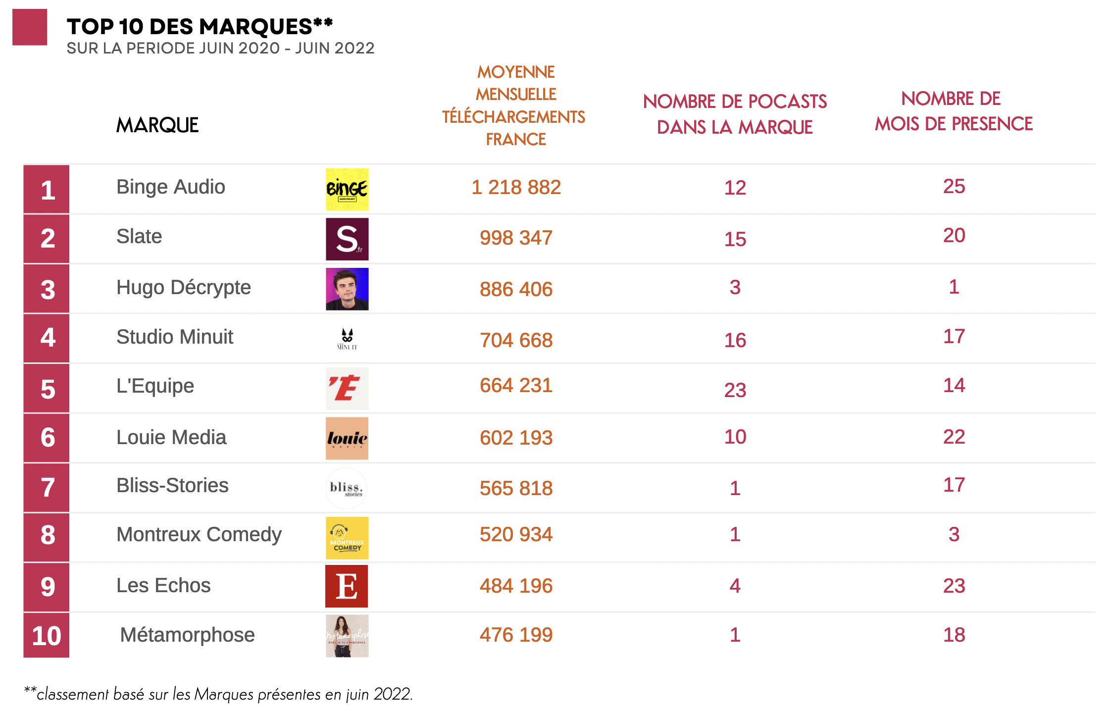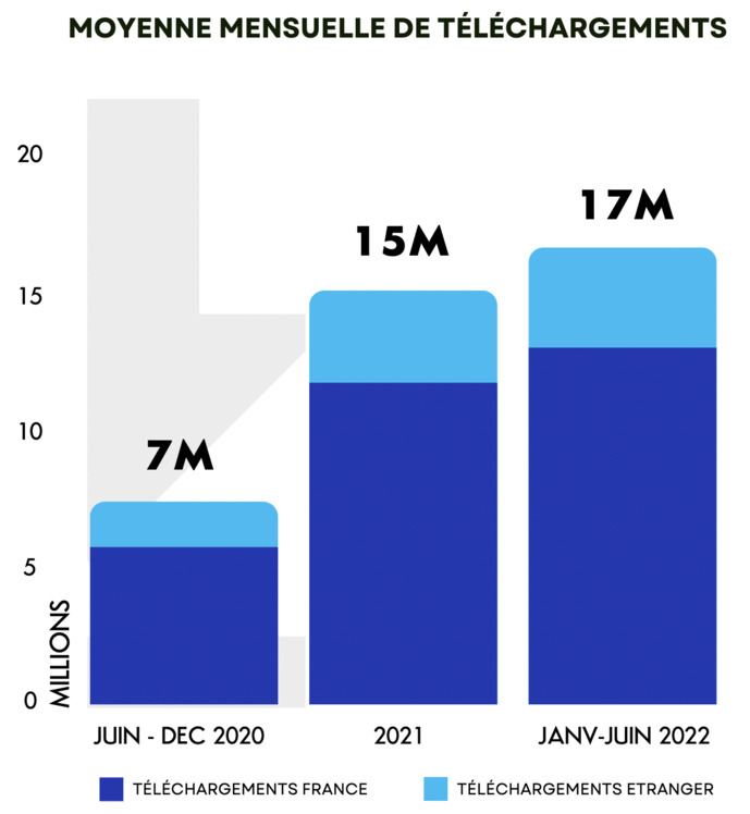 En 2020, 7 millions de podcasts étaient téléchargés, en moyenne, par mois. Deux ans plus tard, l'audience s'envole. Pour le seul premier semestre de l'année 2022, l'ACPM constate une moyenne mensuelle de 17 millions de podcasts téléchargés... Par ailleurs, l'organisme certifie désormais 297 podcasts (contre seulement 31 en juin 2020) et 9 marques de podcasts sur 10 présentes en juin 2020 le sont toujours en 2022.