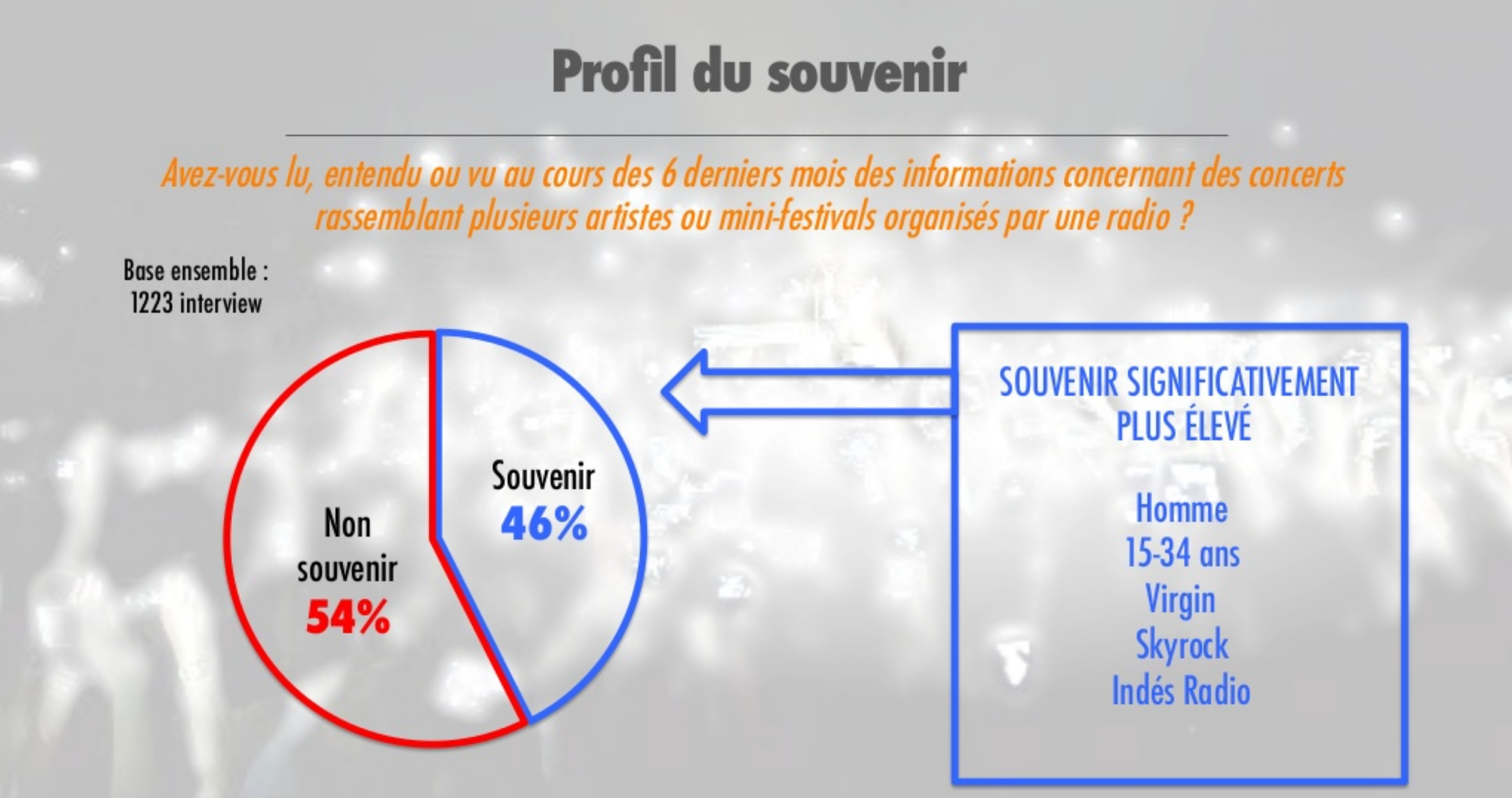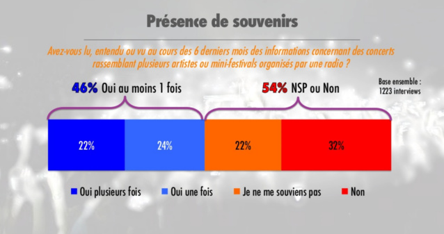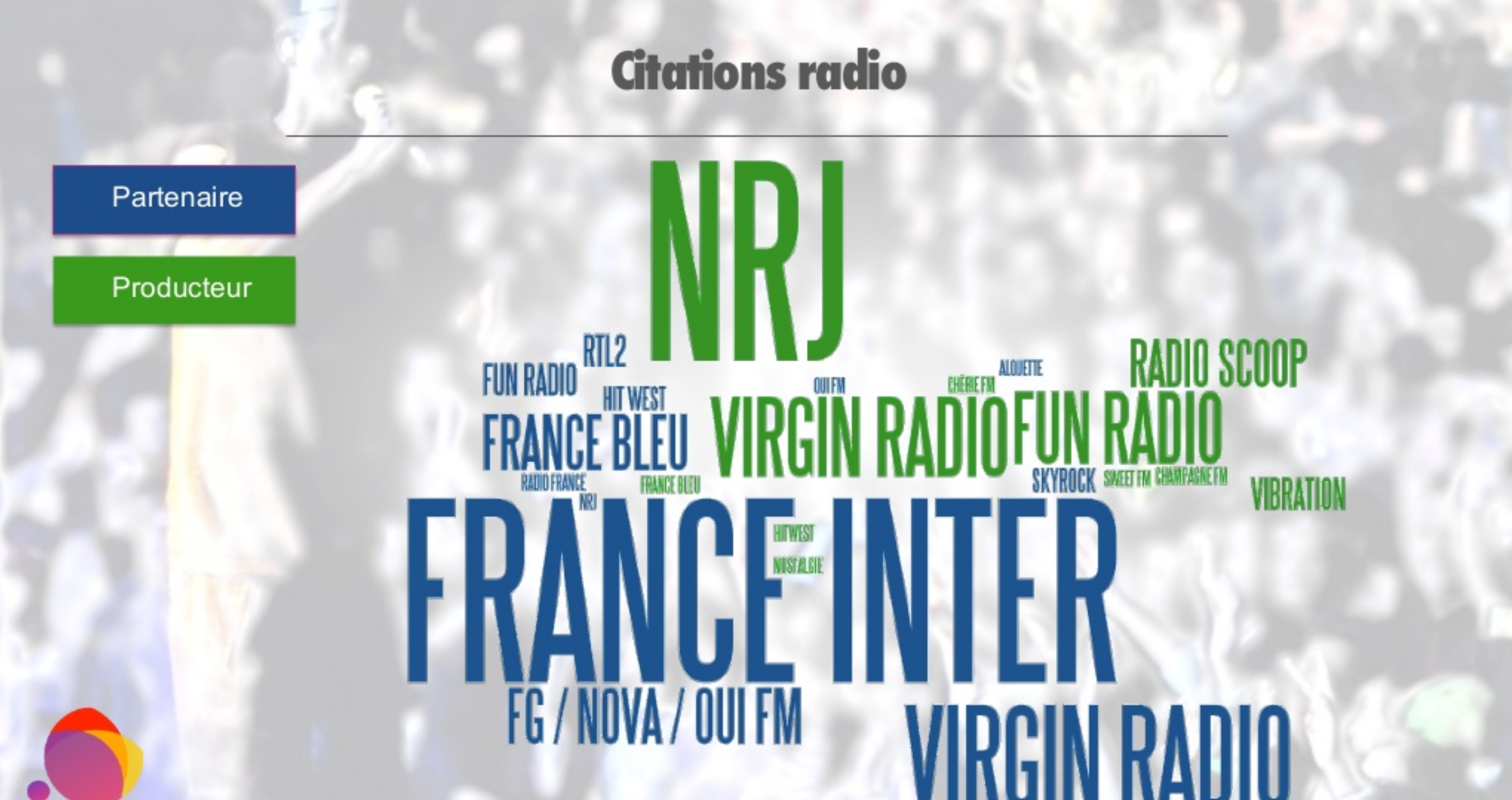 Quelle est la part des différents canaux d’information dans la construction du souvenir ? Quelles sont les marques qui ressortent spontanément ? (radio, artiste, évènement... ) Qu’est ce que ces traces recueillies spontanément nous apprennent sur la perception des auditeurs ?