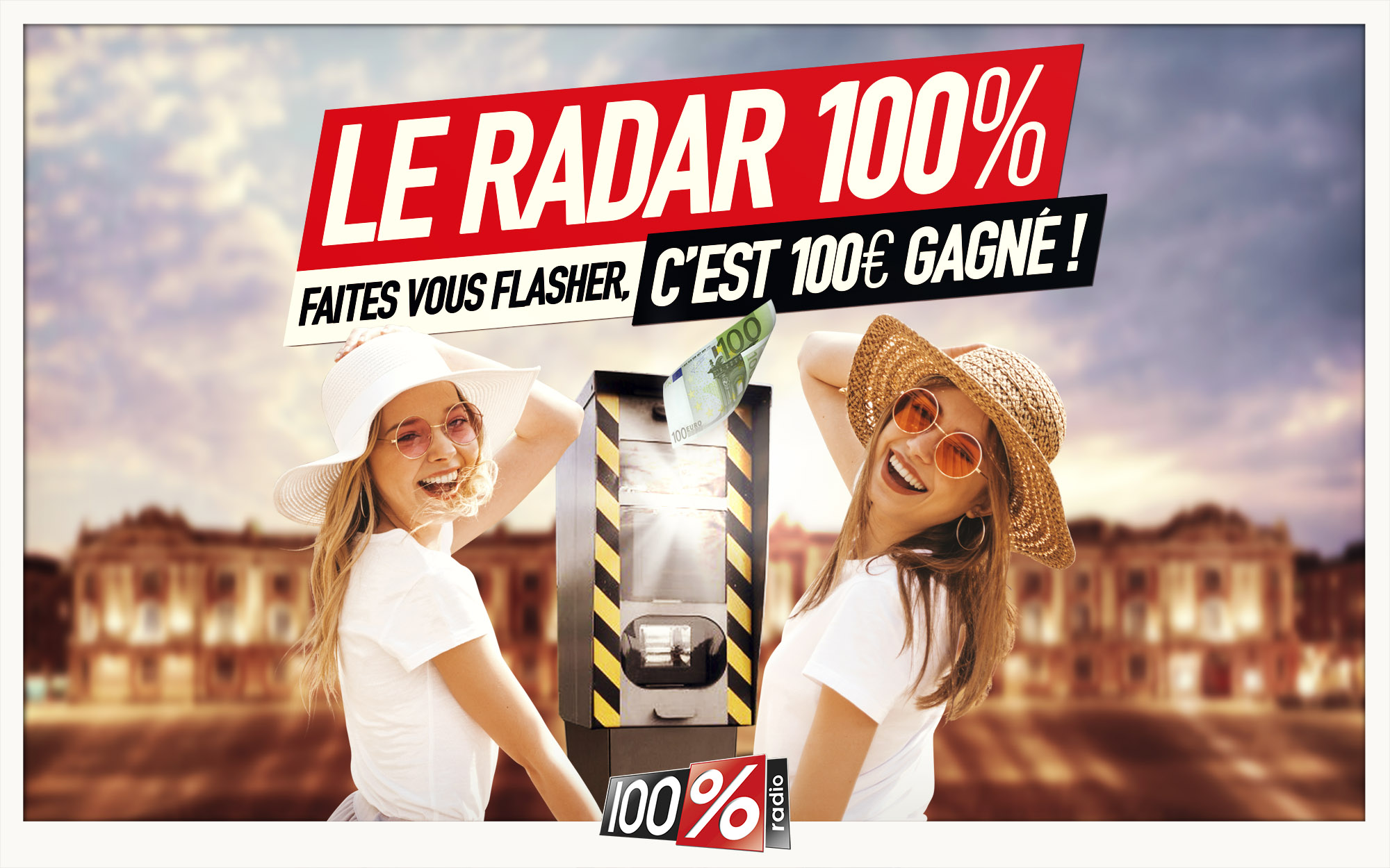 Le principe est simple : les auditeurs viennent se faire flasher par le radar 100%, et peuvent gagner tous les matins sur 100% Radio, par tirage au sort, un chèque de 100€. L’ensemble des villes et dates de la tournée du radar est visible sur le site centpourcent.com. L'opération passera par Verfeil (le 23 mars), par Saint-Sulpice (ce 24 mars), par Plaisance-du-Touch (le 25 mars), Saint-Felix-Lauragais (le 26 mars), par Mirande (le 29 mars), par Carcassonne (le 01er avril), par Gaillac (le 2 avril) ou encore par la ville de Foix …