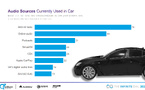 Les principales sources audio actuellement utilisées en voiture par les Américains de plus de 18 ans. La radio reste leader avec 74%, suivie de l’audio en ligne et des podcasts. Les données confirment la transition numérique en cours dans l’écoute embarquée.