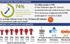 74% des Néo-Zélandais de plus de 10 ans écoutent chaque semaine la radio commerciale. Cela représente 3.5 millions de personnes et 15 h 22 min d’écoute hebdomadaire en moyenne. Source : GfK RAM, S1/2025, Nouvelle-Zélande © GfK, mai 2025.