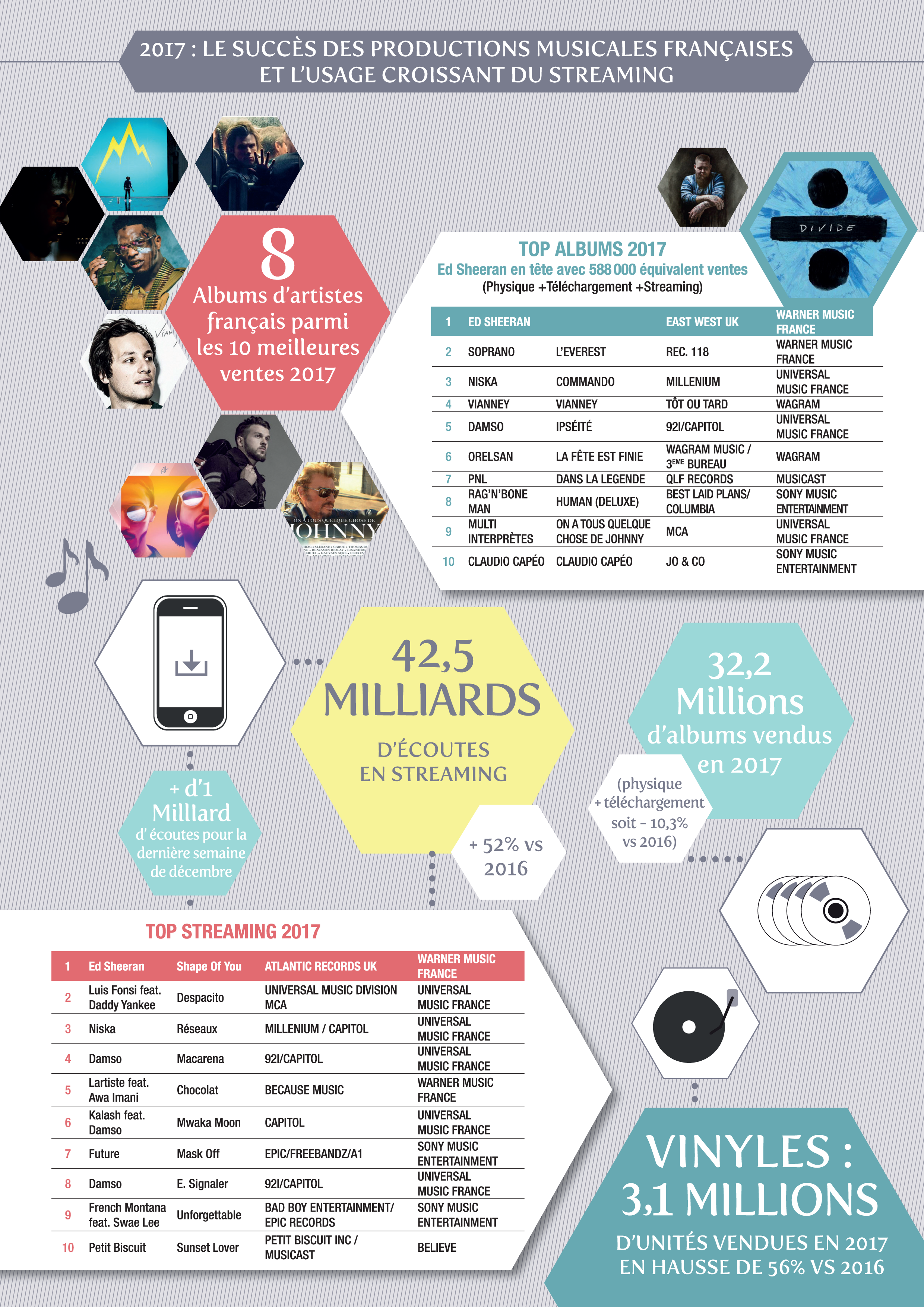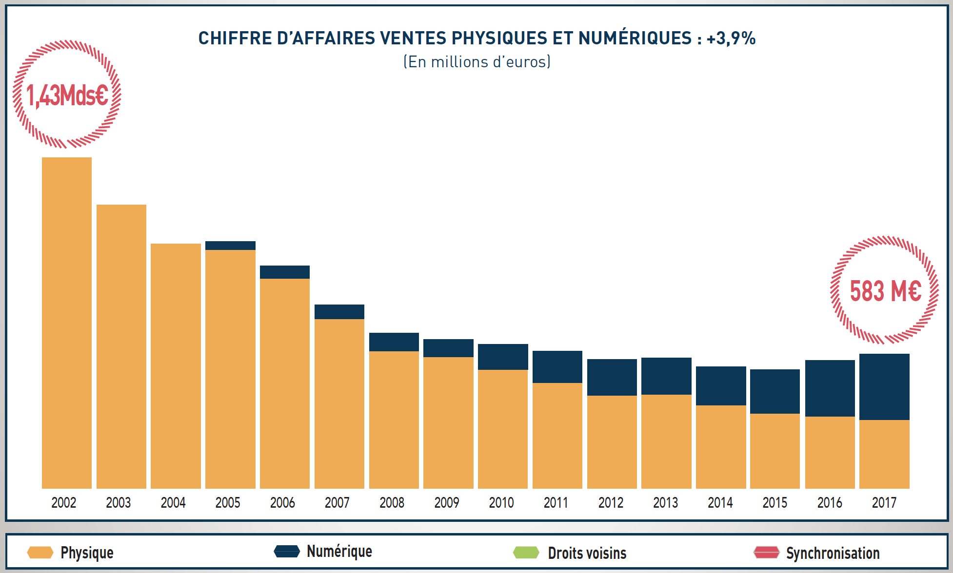 Marché français de la musique enregistrée 2017 : deuxième année consécutive de croissance depuis 15 ans