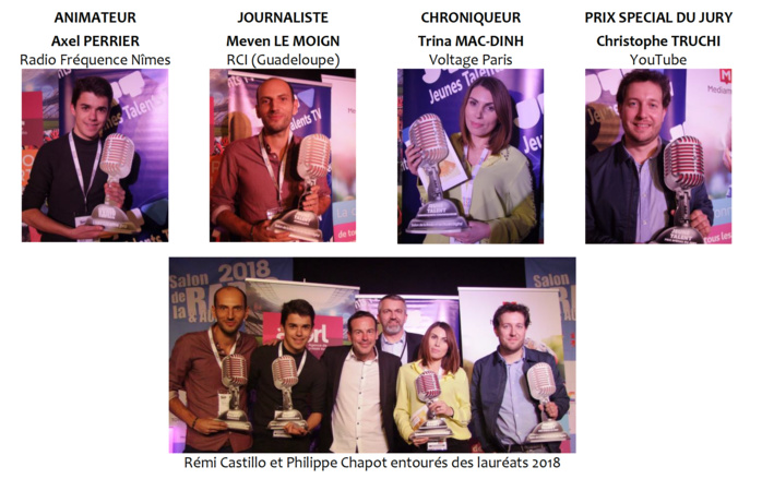 Vendredi dernier s’est tenue la finale, suivie de la remise des trophées des Jeunes Talents de la Radio, de la TV et du Net, depuis le Salon de la Radio, organisé par Philippe Chapot (La Lettre Pro de la Radio), à la Grande Halle de La Villette. Rémi Castillo, créateur du concept Jeunes Talents, avait une nouvelle fois réuni un jury d’exception, sous la présidence de Jean-Luc Reichmann : Arnaud Annebicque et Guy Detrousselle (Médiamétrie), Sylvain Athiel (A2PRL), Stéphane Bosc (RFM), Marc Choquet (Chérie), Jean-Marc Dorangeon (Conseiller auprès de C8 et Bel RTL), Bruno Dubois (Sud Radio), Patrice Gascoin (TV Mag-France Bleu), Alexandre Laurent (France Bleu), Isabelle Layer (France Télévisions), Sylviano Marchione (Studec), Jean-Sébastien Petitdemange (RTL).