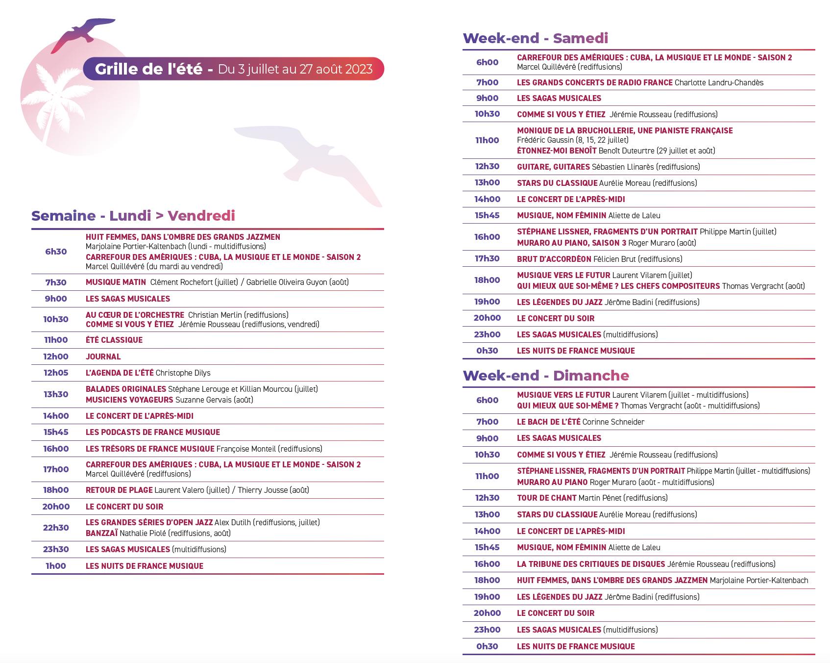 Cet été 23 est une échappée belle et passionnée dans les contrées de toutes les musiques". Marc Voinchet, directeur de France Musique, promet comme chaque été, d'amener les auditeurs, tous les soirs, dans les meilleurs festivals, tantôt d’Aix-en-Provence, de Salzbourg, de Beaune, de Marciac, de La Roque d’Anthéron, de La Chaise-Dieu... Sans oublier, le festival "maison" de Radio France Occitanie Montpellier avec à son affiche, les plus grands noms de la musique classique et du jazz...