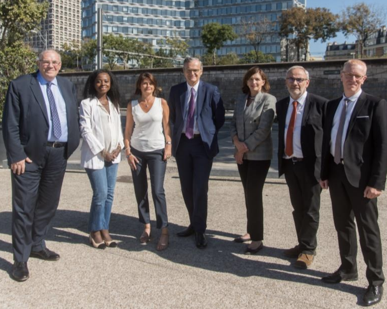 De gauche à droite : Nicolas Curien, Carole Bienaimé Besse, Nathalie Sonnac, Roch-Olivier Maistre, Michèle Léridon, Jean-François Mary et Hervé Godechot © C. Voulgaropoulos