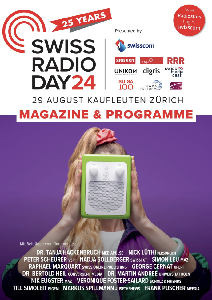 Avec Severine Schori-Vogt, Walter Herger et Philippe Zahno, Jürg Bachmann a joué un rôle majeur dans le développement de l'événement au fil des ans. Jürg Bachmann passera la main durant le prochain SwissRadioDay au nouveau président de l'ASRP, Nicola Bomio. Par ailleurs, cette édition 2024 sera la dixième organisée et gérée par Darryl von Däniken et son équipe. Sous sa direction, la conférence n'a cessé de gagner en popularité dans le secteur radiophonique suisse, mais aussi auprès d'intervenants nationaux et internationaux et d'exposants.