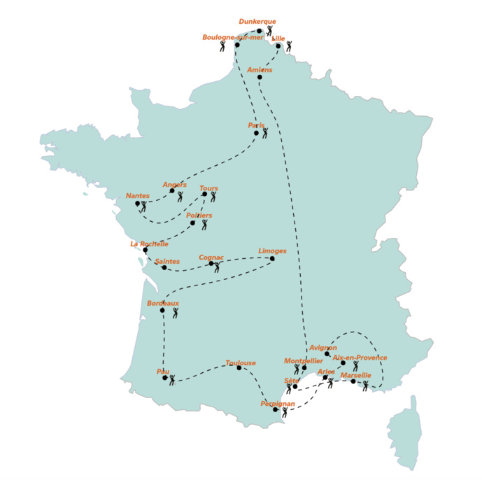 Le grand départ du "Tour d’Après" a eu lieu le lundi 13 juillet en direct de la Cité Fertile à Pantin. La tournée fera étape à Tours, Angers, Laval, Poitiers, Nantes, Saintes, Cognac, Bordeaux, Pau, Toulouse, Perpignan, Arles, Aix en Provence, Marseille, Amiens, Lille, Boulogne-sur-Mer, Dunkerque ou encore Montpellier et Sète. Dans chaque ville, Radio Nova et Les Inrockuptibles prendront leurs quartiers dans un lieu partenaire pour une heure d'émission en direct et en public de 19h00 à 20h00. L’occasion de découvrir et d’échanger avec les acteurs de la vie culturelle locale.Sur une quinzaine de dates, l'émission sera suivie d’une soirée rythmée par les beats du Radio Nova Sound System accompagnés par les DJs des Inrocks Steady Crew. Un grand blindtest désignera la ou le champion de chaque ville.