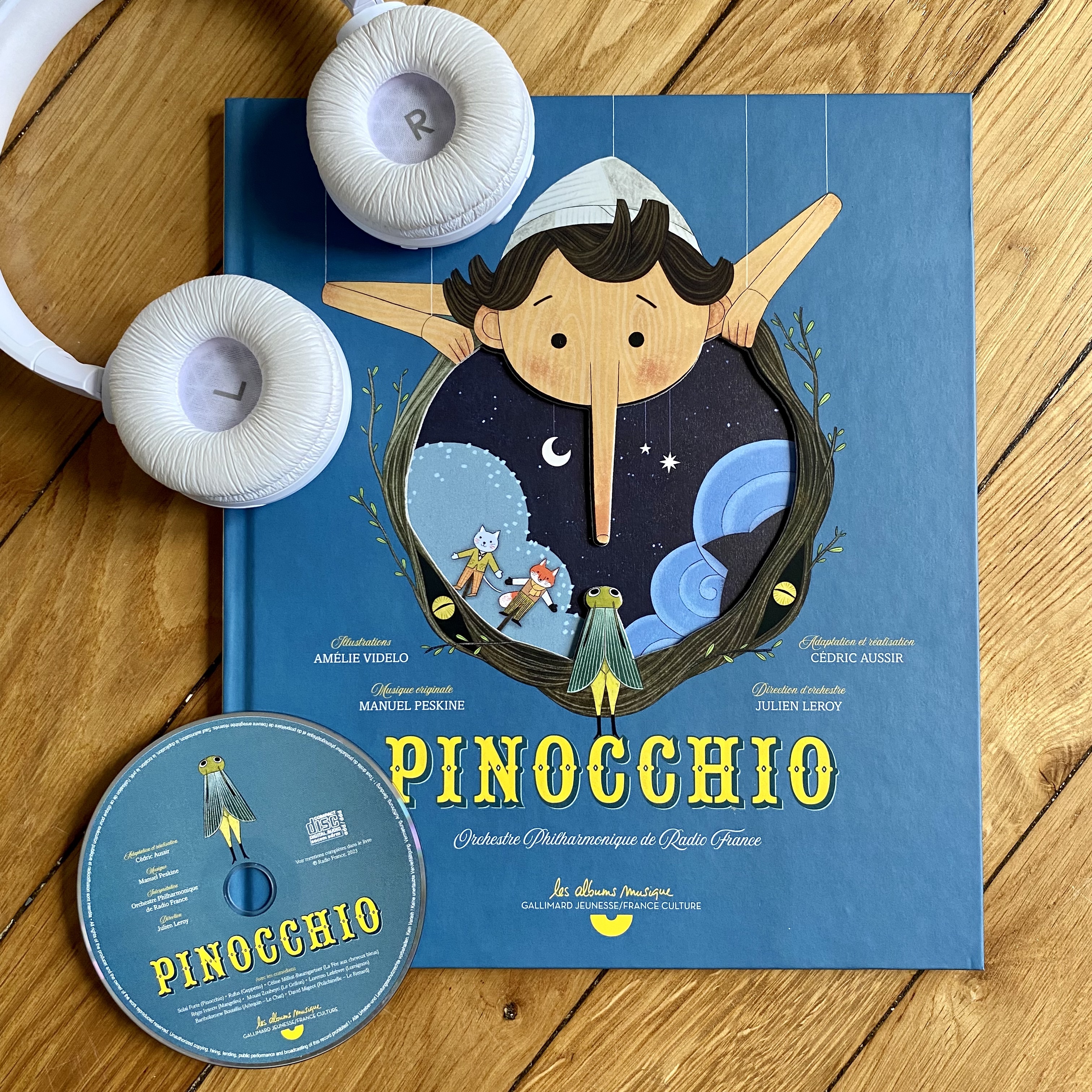 "Pinocchio" a été adapté et réalisé parCédric Aussir. La musique originale est signée Manuel Peskine avec l’Orchestre Philharmonique de Radio France sous la direction de Julien Leroy. Les illustrations sont signées Amélie Videlo.