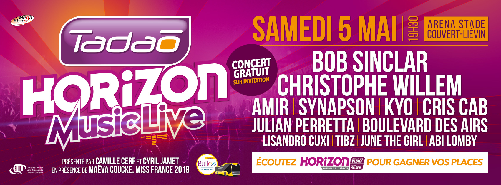 En présence de Maëva Coucke, Miss France 2018, cette soirée sera présentée par Camille Cerf, Miss France 2015, et Cyril Jamet, animateur du morning sur Horizon. Plus de 12 000 personnes devraient assister à ce concert en gagnant leurs places en écoutant Horizon sur 88 à Béthune et à Lens, sur 98.5 à Arras. Depuis 2016, Horizon multiplie les concerts gratuits. Stars françaises et internationales se succèdent lors des spectacles que la radio de l'Artois offre à ses auditeurs : Jimmy Somerville, Vianney, Joyce Jonathan, Julie Zenatti, la troupe de la comédie musicale " Les Dix Commandements ", Lilian Renaud, Amine, Corson, Zaho, Léa Castel, Mickaël Miro, ou encore Cock Robin... En tout, près de 70 000 personnes ont déjà assisté à ces concerts à Béthune, Harnes et Lens.