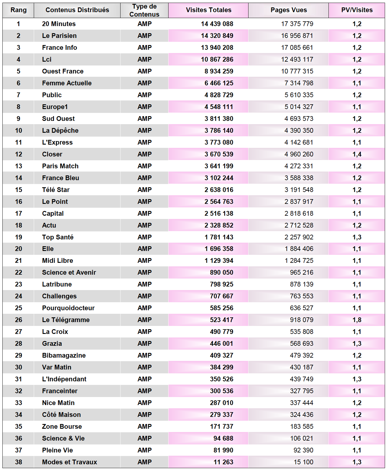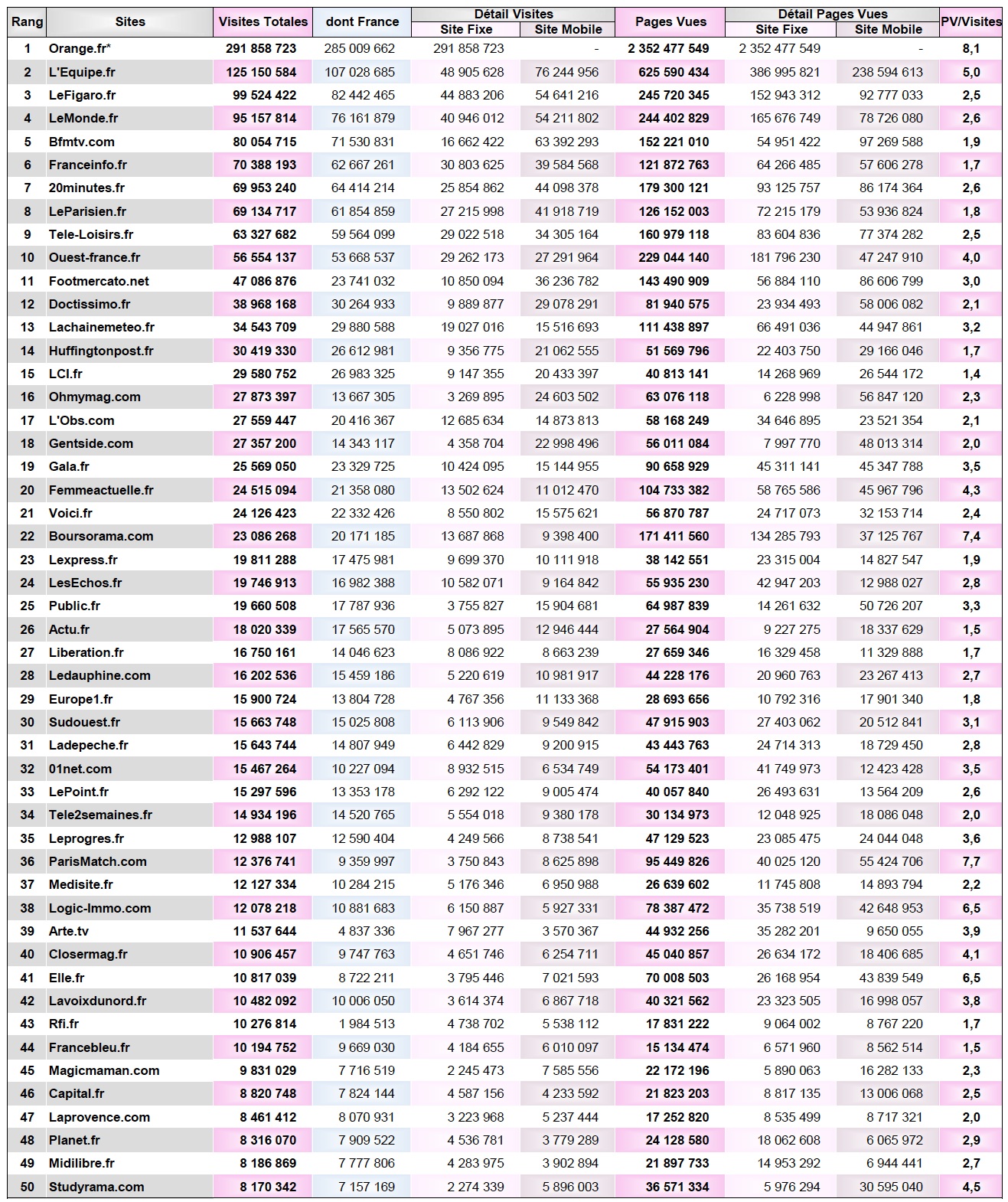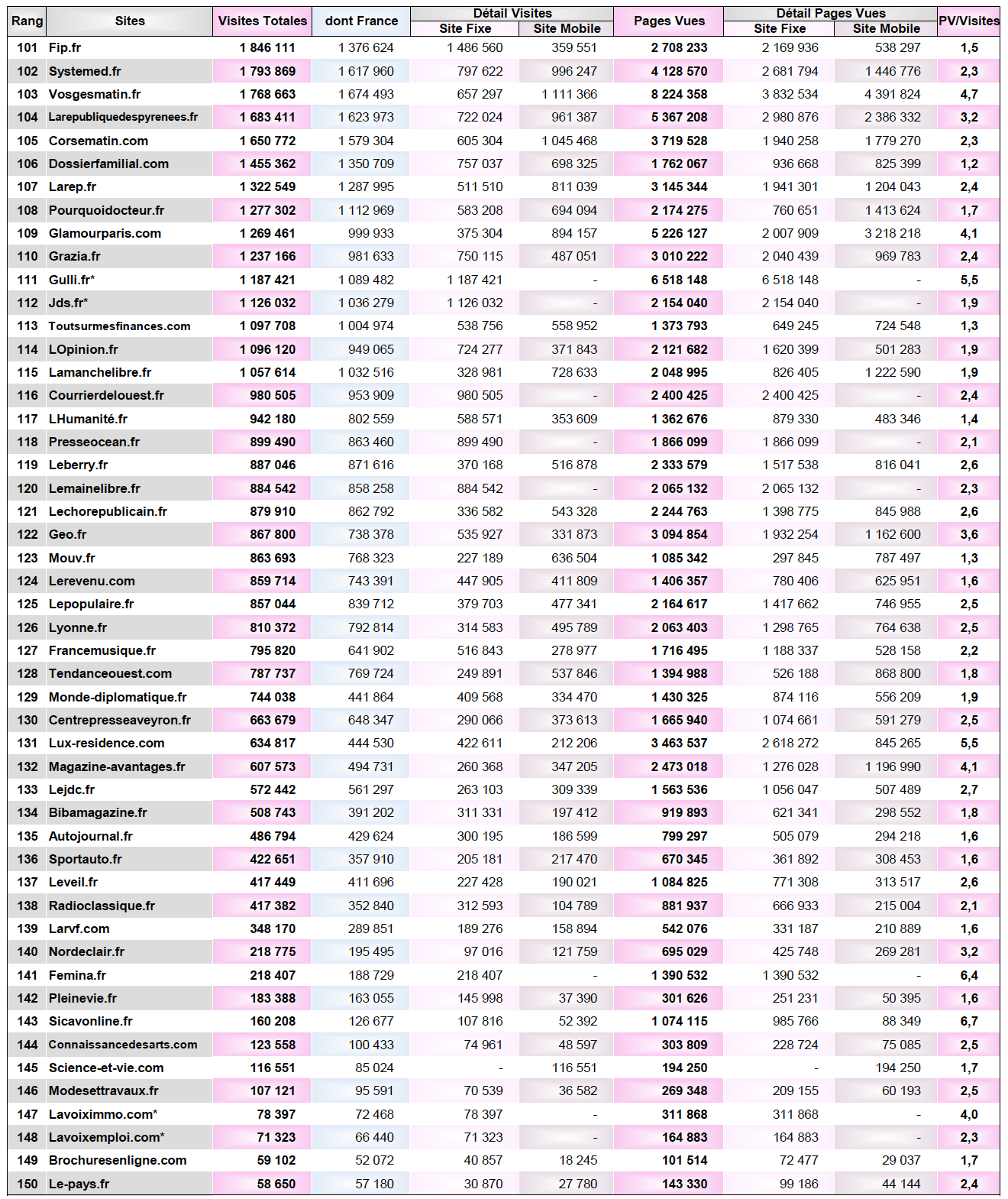 L'ACPM a dévoilé les chiffres de fréquentation des sites web fixes et mobiles, des applications mobiles et tablettes ainsi que des contenus distribués, certifiés durant le mois de juin 2018. À l'occasion de la Coupe du monde de football, les trois premiers sites de sport spécialisés totalisent plus de 335 millions de visites sur le mois de Juin (+40% d'évolution versus juin 2017).
