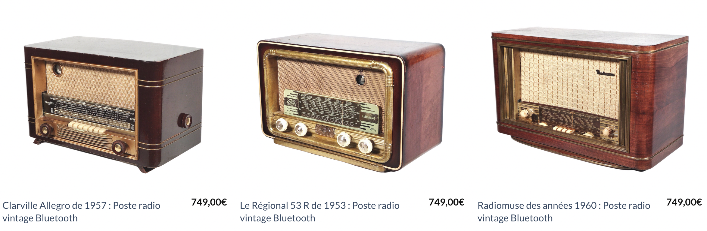 On y retrouve les plus beaux postes radio TSF, remis au son du jour grâce à un nouveau système audio 5.0 APTX-HD, de puissants haut-parleurs et d’un amplificateur audio haute fidélité. Ainsi, les enceintes Bluetooth vintage sont connectables à tous les supports audio d’aujourd’hui : smartphones et tablettes pour écouter de la musique en streaming,… Des pièces uniques vintage qui renferment la dernière technologie musicale.