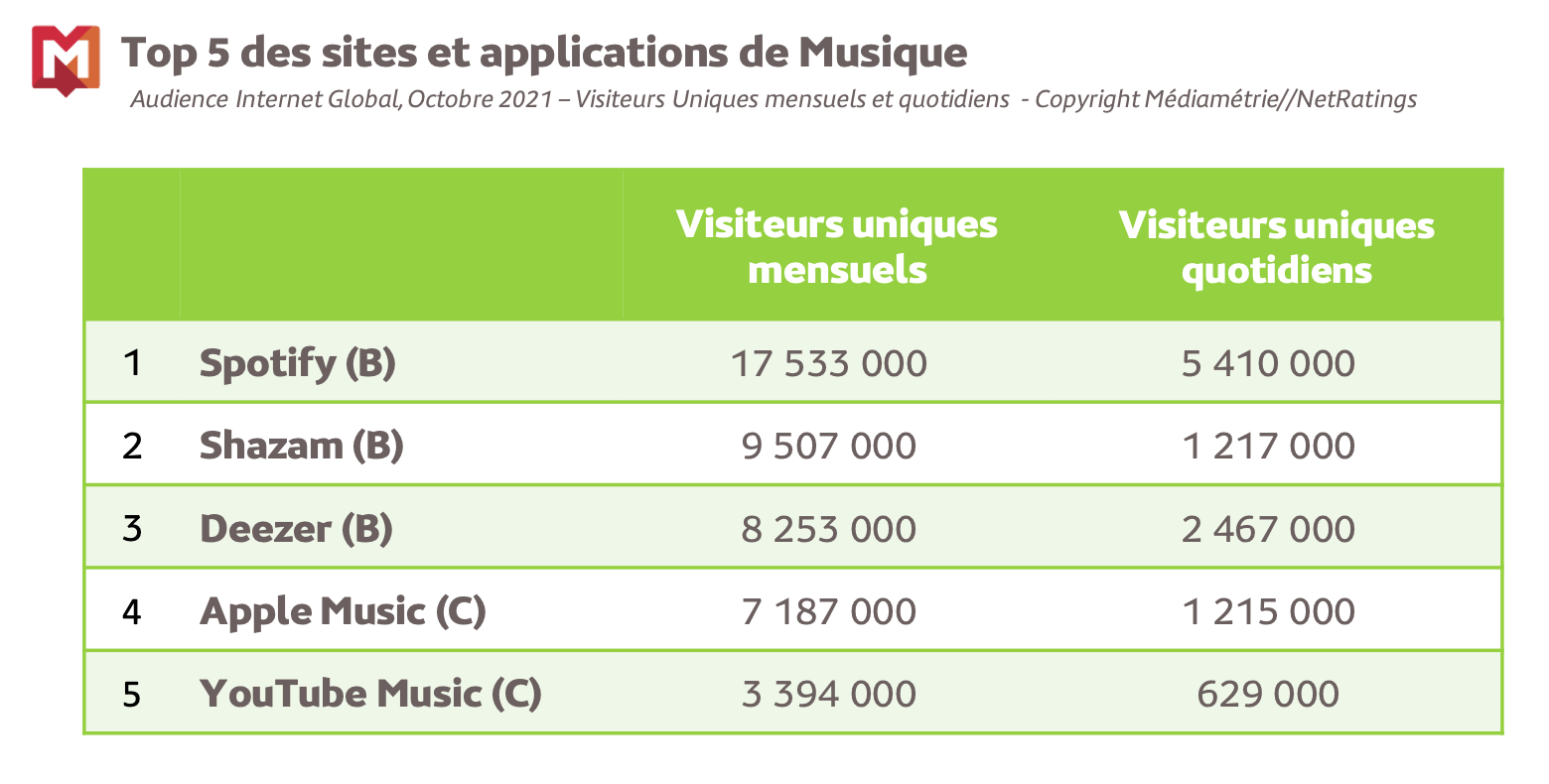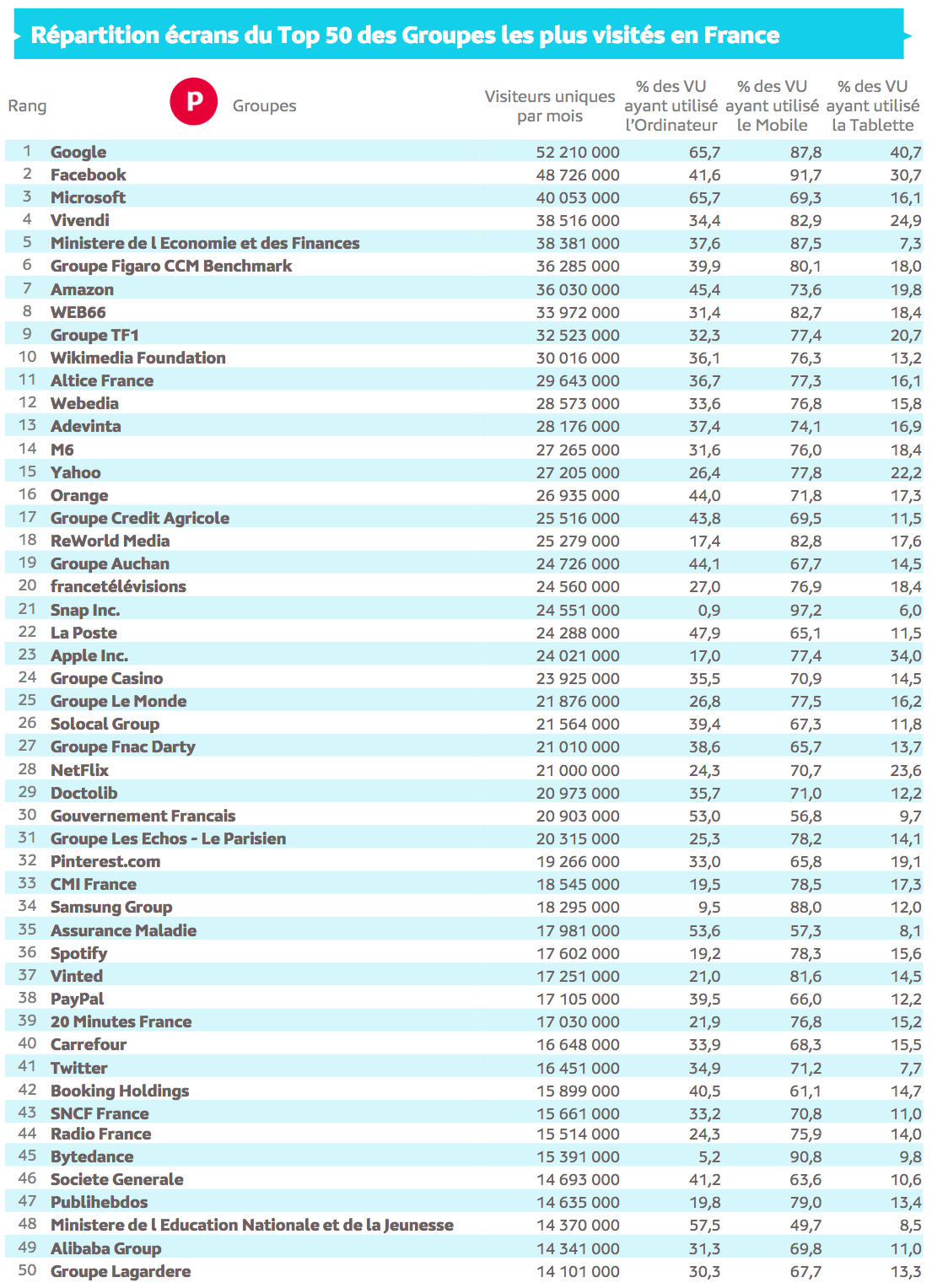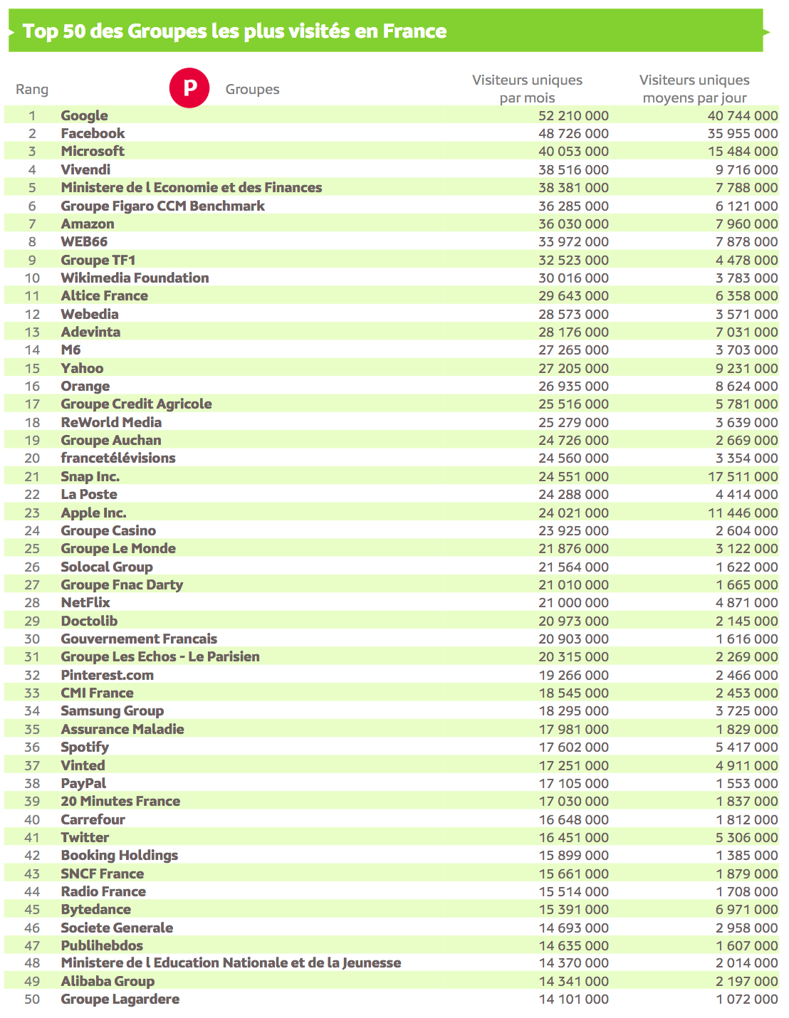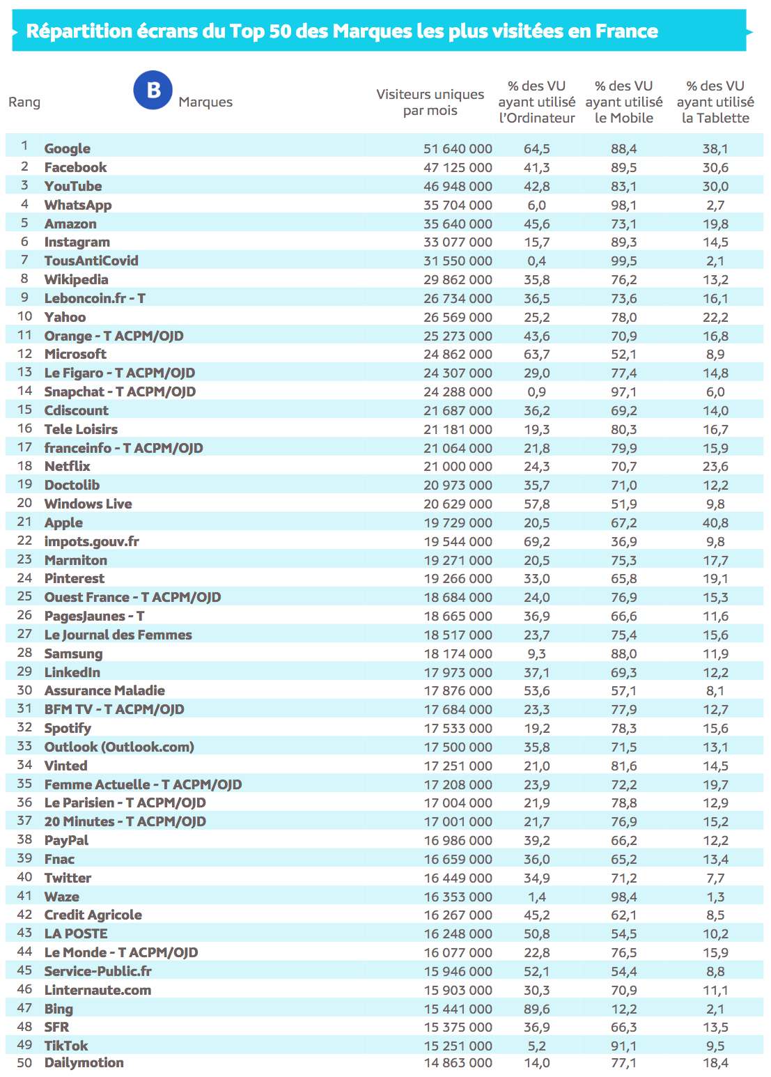 Source : Médiamétrie et Médiamétrie//NetRatings - Audience Internet Global - Tous lieux de connexion - France – Octobre 2021 - Base : 2 ans et plus Copyright Médiamétrie - Tous droits réservés
