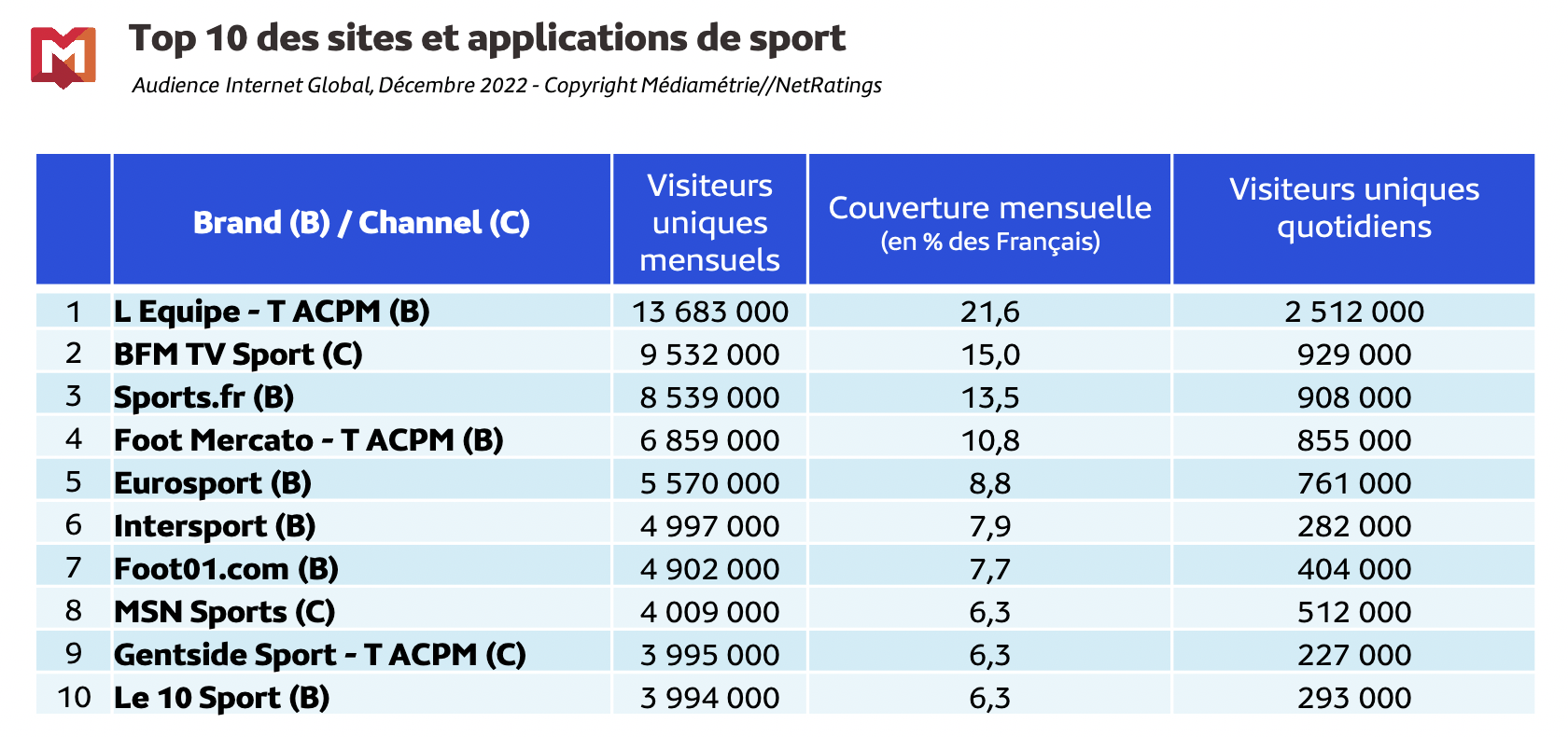 Chaque jour, l'univers sport regroupait 10.5 millions de visiteurs uniques, soit une hausse de 21% par rapport à l'année précédente. Le pic d'audience a été enregistré le samedi 10 décembre, jour du match France-Angleterre, avec 12.8 millions de visiteurs uniques.