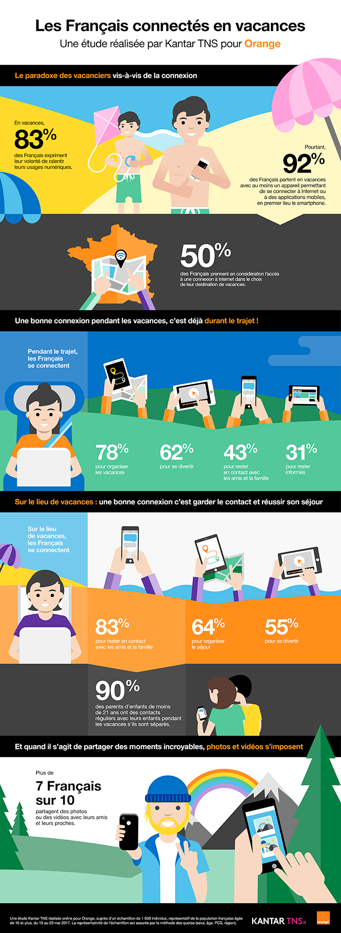 Dès le trajet des vacances, une connexion Internet de bonne qualité permet de rester informé (31%), de se divertir (62%) et surtout de veiller au bon déroulé des vacances (78%) : un temps de trajet qui devient plus utile et une connexion qui joue le rôle de soutien en cas de difficultés, y compris de transport. Sur le lieu des vacances, pouvoir se connecter permet surtout de garder le contact (83%), d'organiser son séjour (64%), de se divertir (55%) . Sur le lieu de vacances, une bonne connexion assure aux Français la possibilité de bien maitriser leur nouvel espace de jeu comme la capacité de rester en contact avec leur environnement habituel.