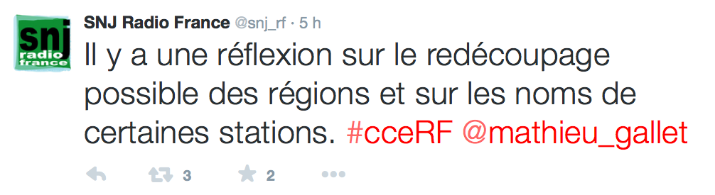 Mais avec la récente actualité de la fusion des régions et du redécoupage territorial, les stations locales de Radio France seront-elles amenées à modifier leur nom ? "Il y a une réflexion sur le redécoupage possible des régions et sur les noms de certaines stations" mentionne le compte Twitter du SNJ.