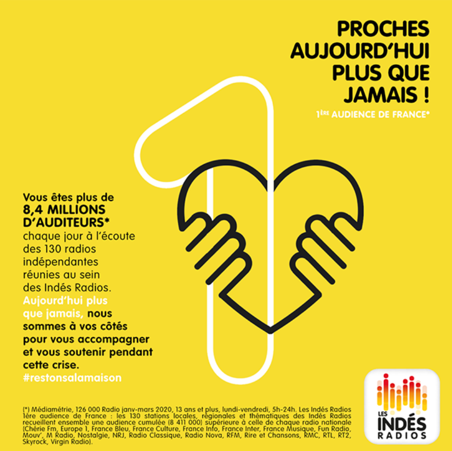 "Ces bons scores confirment la puissance des opérateurs locaux dans le paysage radiophonique hexagonal. Aujourd’hui encore plus que jamais en cette période de confinement historique, Les Indés Radios sont aux côtés de leurs auditeurs pour les accompagner et les soutenir dans leur quotidien" précise le communiqué.