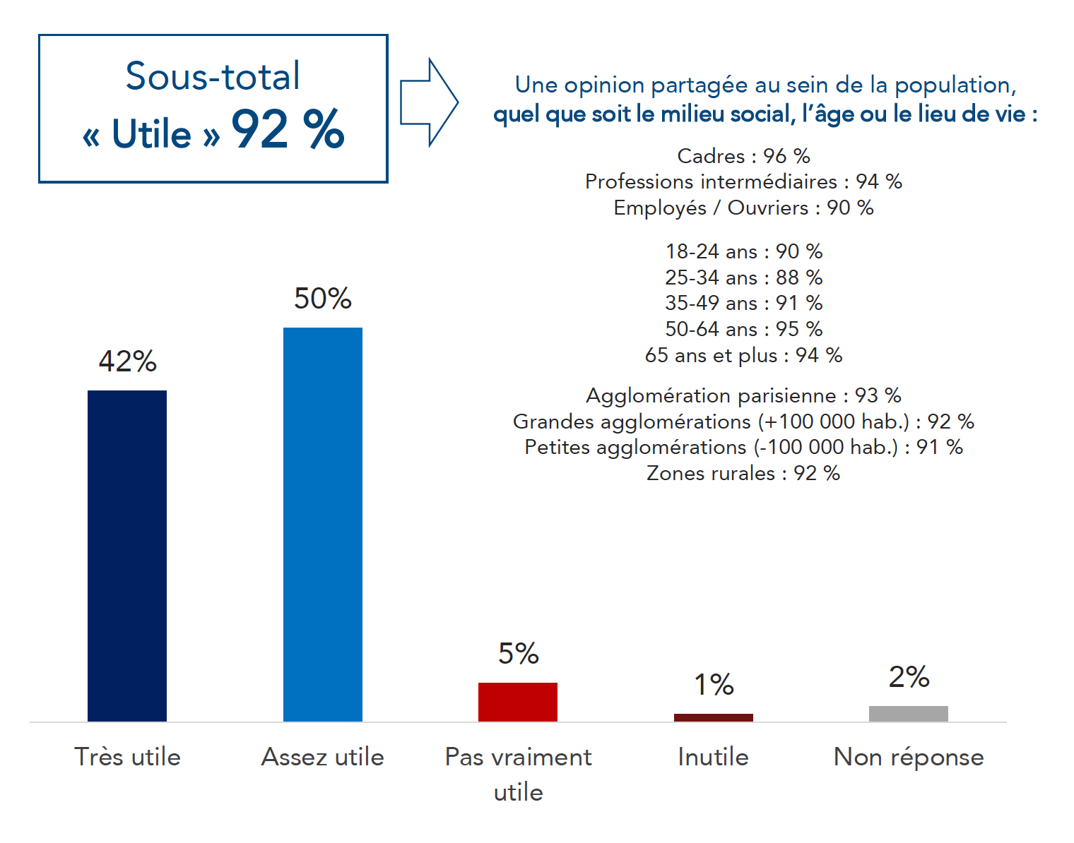 Plus de neuf Français sur dix (92%) considèrent le journalisme comme un "métier utile". Un unanimisme rare qui contraste avec la méfiance souvent mise en avant vis-à-vis des médias . D’autant que ce point de vue très positif n’est conditionné ni par l’âge, ni par le milieu social, ni par le lieu de vie : jeunes ou vieux, de milieux aisés ou populaires, vivant à Paris, dans des petites villes ou en zone rurale, les Français s’accordent donc sur l’utilité du journalisme.