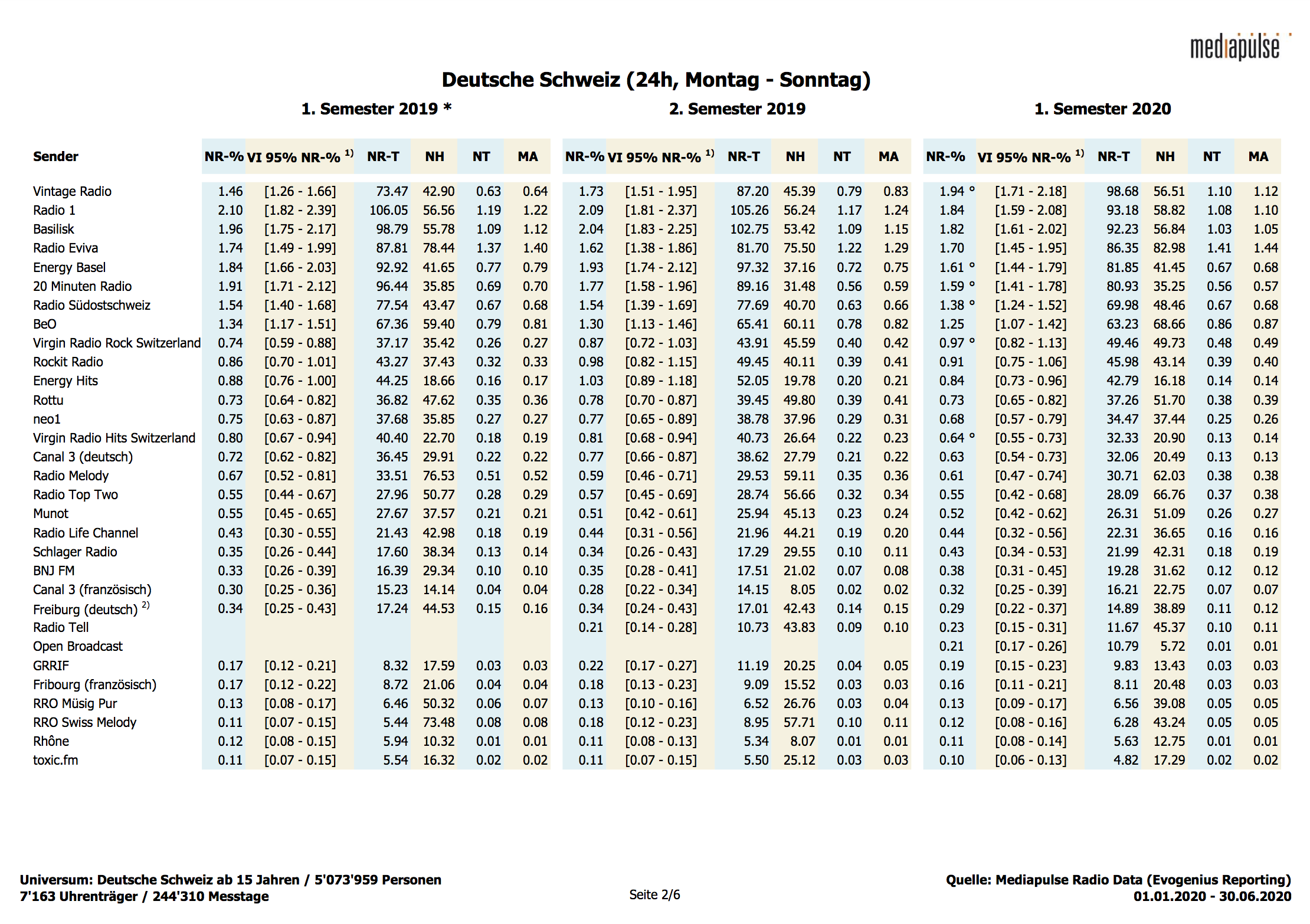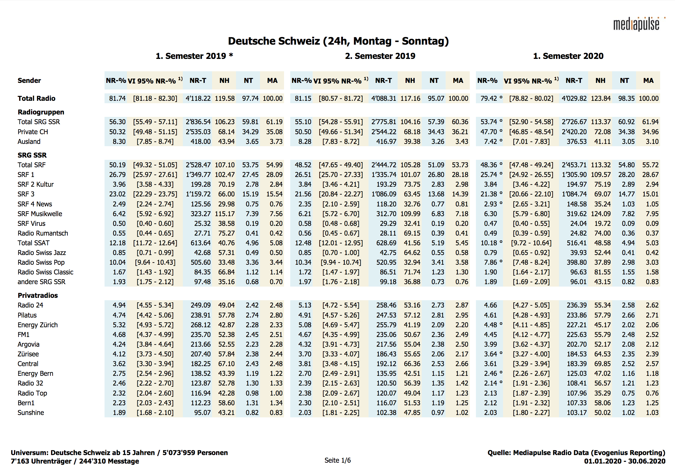 Pour des raisons à la fois méthodologiques et d’économie de recherche, les systèmes de mesure de Mediapulse SA ne couvrent pas la consommation de radio et de télévision sous toutes ses formes, si bien que les chiffres présentés tendent plutôt à la sous-estimer. Ainsi, l’utilisation de la télévision dans des lieux publics ou sur des appareils mobiles n’est pas mesurée. Pour la radio, c’est l’écoute en différé ou au moyen d’un casque qui n’est pas prise en compte.