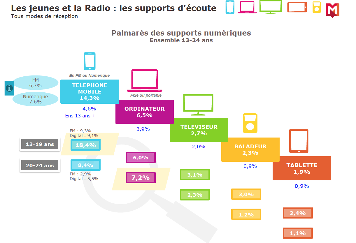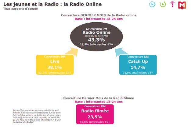 Si les 15-24 ans aiment la radio, ils apprécient d'abord internet. Et, ils s'en servent : 89% l'utilisent pour rechercher, 86% pour consulter la presse, 83% pour interagir sur les réseaux sociaux, 81% pour visionner des vidéos ou la télévision et 61% pour consulter la presse.