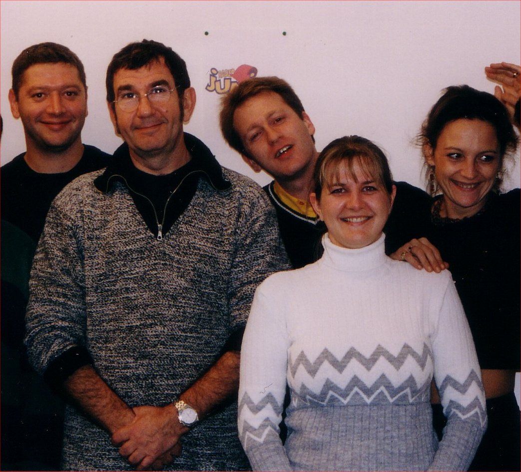 Les fondateurs de Radio Junior, il y a maintenant quinze ans, avec le parrain Richard Gotainer. Fabrice Lafitte est au centre