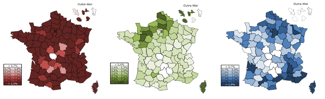 Répartition géographique de la population des CJA en paris sportifs, paris hippiques et poker © Arjel