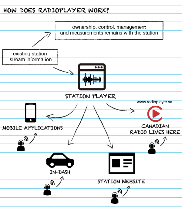 Au Canada, Radioplayer rassemblera les stations de Central Ontario Broadcasting, Clear Sky Radio, Cogeco Média, Corus, Durham Radio, Golden West, Harvard Broadcasting, Larche Communications, Newcap Radio, Pattison, Rogers, Rawlco Radio, RNC MEDIA, Saskatoon Media Group et Vista Radio.