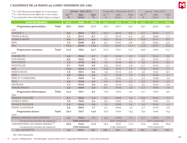 Les résultats de la 126 000 Radio sur la période Janvier-Mars 2014