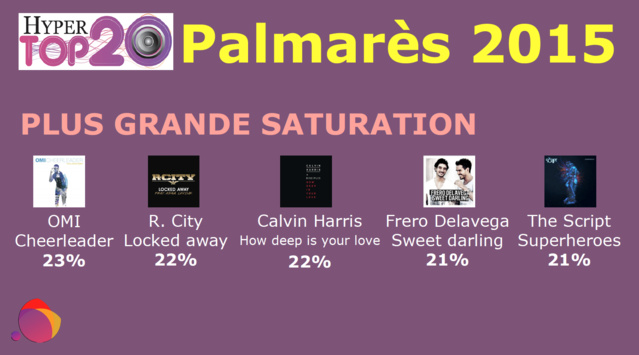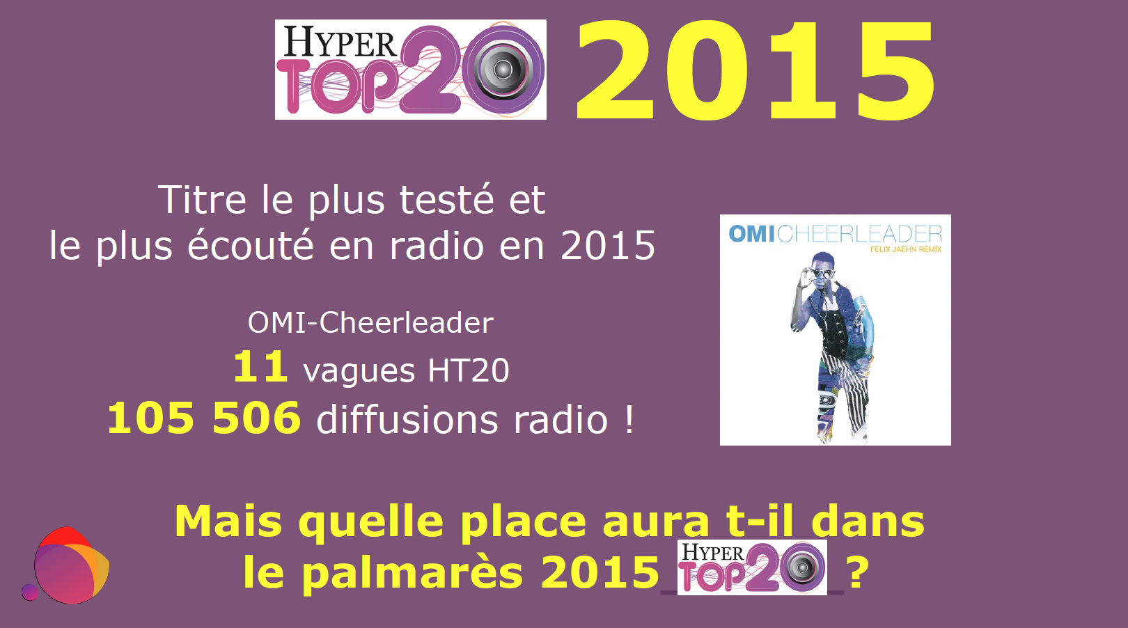 Le titre le plus testé est aussi celui qui a été le plus diffusé en radio, avec plus de 105 000 diffusions, et une présence dans la moitié des vagues d’enquêtes HyperTop20 : il s’agit de "Cheerlader" de OMI. Pour autant, ce titre est loin d’avoir fait l’unanimité dans le public, puisqu’il figure en tête de la saturation : 23% du public a jugé l’avoir trop entendu.