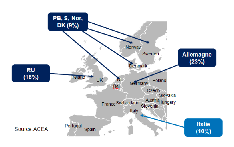 Les quatre régions les plus avancées d’Europe sont la Grande Bretagne, la Norvège, le Danemark et la Suisse – avec un taux d’équipement des foyers en récepteurs radio numérique compris entre 33 et 48%.
