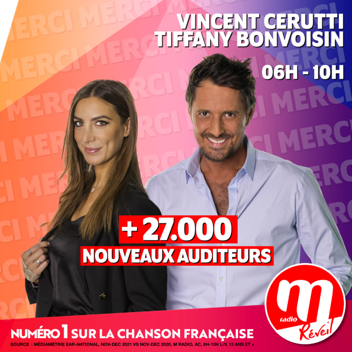 La matinale "M Radio Réveil" de 06h à 10h)rassemble 27.000 nouveaux auditeurs soit 323 000 auditeurs à l’écoute de Vincent Cerutti et Tiffany Bonvoisin. Le 10/13 avec Ombeline Brumain gagne 48 000 auditeurs sur 1 an. Le 16/20 de Jérôme Zano et Anne Sophie Hamel renforce lui aussi son audience avec 44 000 nouveaux auditeurs.