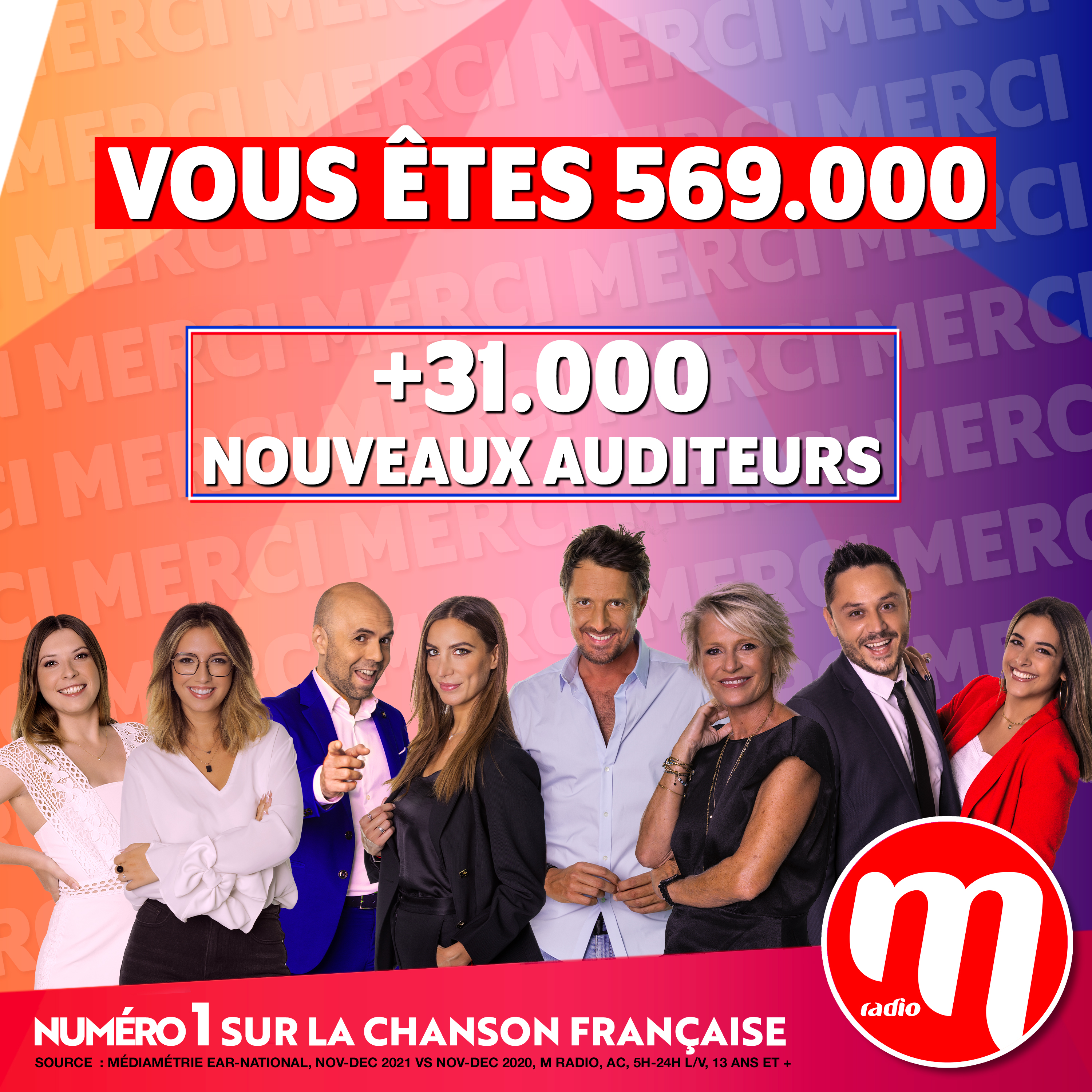nouveaux auditeurs. M Radio rappelle qu’elle est "la seule radio nationale à défendre la chanson française en diffusant 100% de chansons françaises Un programme unique pour un réseau".