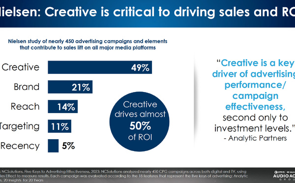 Selon Westwood One, près de 50% du retour sur investissement publicitaire dépend de la qualité créative du message. Appuyée sur plusieurs études de Nielsen, System1, Effie et Kantar Millward Brown, l’analyse souligne que les campagnes audio les plus performantes sont celles qui combinent émotion, clarté et répétition de la marque.