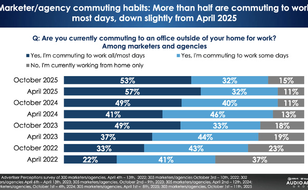 Selon l’étude Cumulus Media Westwood One Audio Active Group, réalisée en octobre 2025 auprès de 303 professionnels du marketing et des agences et de 1 600 auditeurs américains, la radio conserve sa position dominante dans les trajets domicile-travail et reste le média de référence pour toucher les actifs en mobilité.