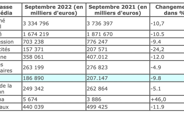 La guerre d'Ukraine, une situation économique tendue, l'inflation et des perspectives moroses liées aux tarifs de d'énergie continuent d'impacter le climat publicitaire en Allemagne. En septembre, par exemple, les investissements publicitaires ont diminué de 10.7% comparativement au même mois de l'année précédente.
