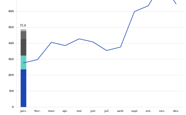 Après la forte chute de janvier 2021, le marché publicitaire suisse débute l’année 2022 en force, comptabilisant 487.7 millions de francs bruts. Cela correspond à une augmentation de 75.9% par rapport à l’année précédente. Comparé à 2020 (+12.8%) et à l’année 2019, pré-pandémie, (+3.1%), le marché publicitaire se montre plus fort en 2022 selon une étude de Media Focus.