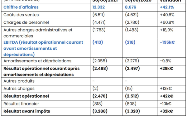 AudioValley, qui se positionne comme le spécialiste international des solutions B2B dans l’audio digital, a publié aujourd’hui ses résultats du premier semestre 2021 et le chiffre d’affaires du troisième trimestre 2021. Au premier semestre, l'entreprise enregistre une hausse de 50% du chiffre d’affaires et de 51% au 3e trimestre, avec une marge brute en augmentation, à 47.2%.