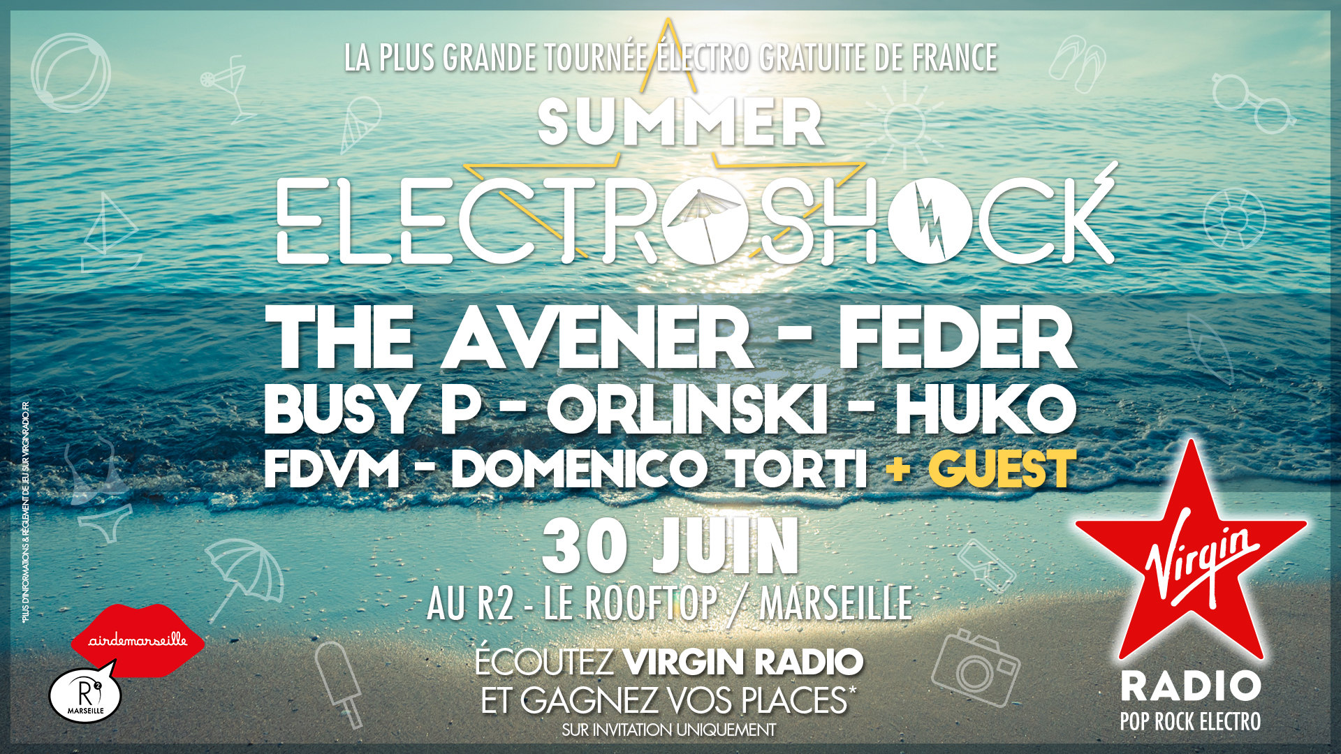 Depuis plus de deux ans, les Soirées Electro Shock Virgin Radio se positionnent comme "une référence pour les passionnés de musique et d'Electro". Les Zéniths de Lille, Paris, Toulouse, Strasbourg et Nantes, le Dôme de Marseille et la Halle Tony-Garnier de Lyon ont déjà permis à des milliers d'auditeurs venus de toute la France, de danser au son de l'Electro de la station musicale de Lagardère Active. Dans moins d'un mois, le 30 juin, la Soirée Summer Electro Shock se déroulera au R2 de Marseille avec "les plus grands DJ" et notamment The Avener, Feder, Busy P.