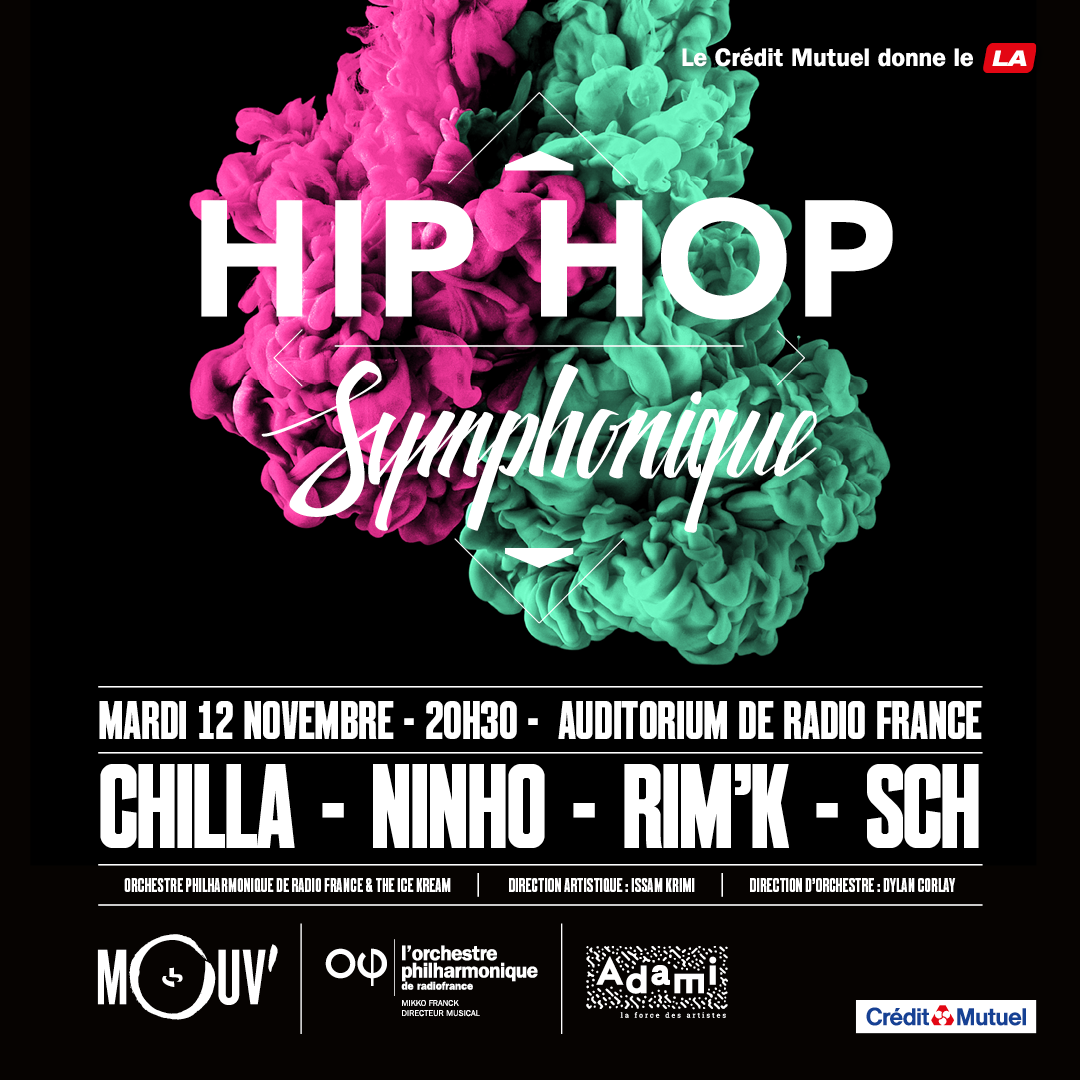 Le mardi 12 novembre, quatre artistes phares de la scène française sont invités à l’Auditorium de Radio France pour un concert d'exception mêlant hip-hop et musique symphonique, réunissant sous la direction artistique d’Issam Krimi, l'Orchestre Philharmonique de Radio France dirigé par Dylan Corlay et le live band The Ice Kream.
