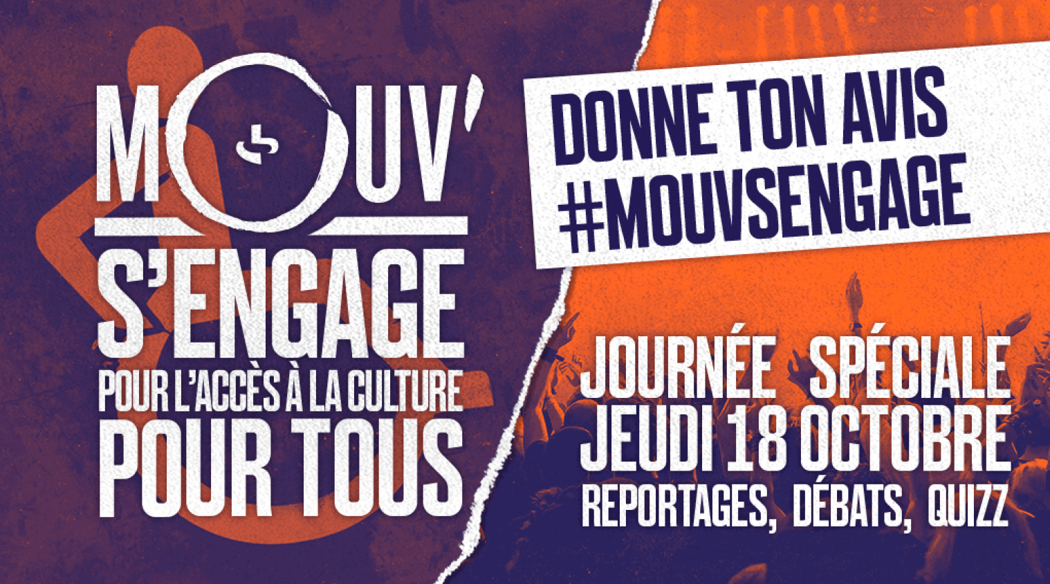 Mouv’ s’engage aussi avec sa communauté qui pourra soumettre ses idées. Les meilleures seront relayées le jeudi 18 octobre à l’occasion d’une journée spéciale sur l’antenne de Mouv’ avec reportages, invités, débats et bons plans. La station de Radio France s’engage ainsi à "promouvoir les bonnes pratiques à adopter pour une meilleure intégration des jeunes en situation de handicap dans le domaine culturel français".