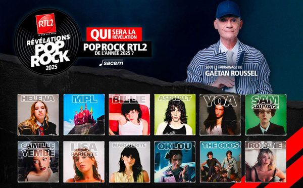 RTL2, avec le soutien de la Sa&cem, propose à ses auditeurs d’élire en ligne la "Révélation Pop-Rock" de l’année 2025 parmi les 12 artistes sélectionnés tout au long de l’année. Le lauréat sera désigné en janvier, lors d’une émission spéciale parrainée par Gaëtan Roussel, figure emblématique du pop-rock francophone.