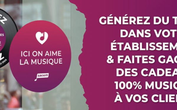 Pour valoriser l’engagement de ses clients commerçants à soutenir la création musicale, la Sacem organise cette année, du 21 juin au 21 septembre 2023, un grand jeu concours qui récompense les commerçants qui diffusent de la musique… mais aussi leurs clients.