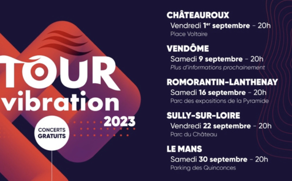 Vibration annonce les premiers artistes du Tour Vibration 2023. Des premiers noms qui marquent "le caractère incontournable du plus grand rendez-vous musical gratuit des régions Centre-Val de Loire et Pays de la Loire" : Tom Gregory, 47Ter, Christophe Willem, Ridsa, Hervé, Boris Way, Keen’V, Calema, Jain et Mentissa.