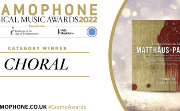 La Maîtrise de Radio France récompensée par un Gramophone Classical Music Awards pour l’enregistrement de la Passion selon saint Matthieu sous la direction de Raphaël Pichon avec l’ensemble Pygmalion. Le disque paru chez Harmonia Mundi a été récompensé dans la catégorie chant choral.