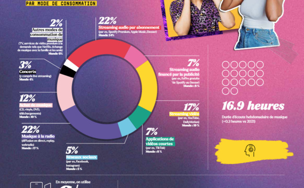 L’IFPI, représentante de l’industrie du disque dans le monde, publie aujourd’hui son rapport 2022 "Engaging in Music" – la plus vaste étude menée sur la consommation de musique, qui décrypte les usages de 44 000 personnes dans 22 pays. On y apprend que l’écoute hebdomadaire de musique en progression à 20.1 heures.