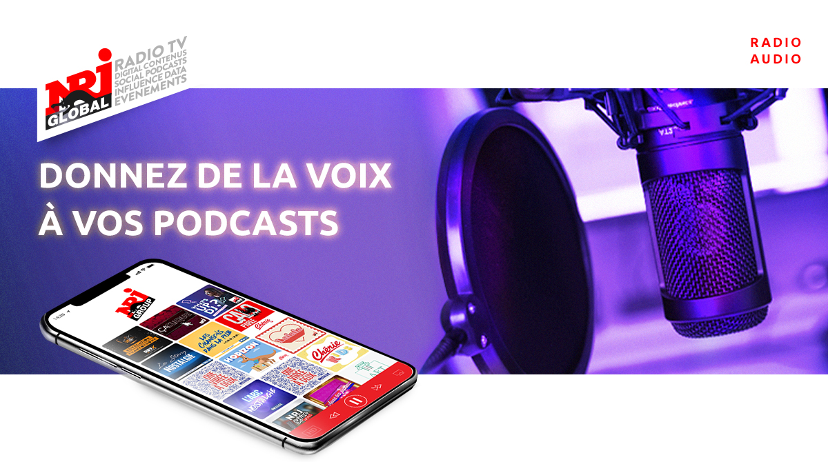 Dans un contexte où l’offre de podcasts s’est démultipliée ces dernières années, le groupe NRJ a fortement enrichi son expertise sur ce format. Avec le lancement des programmes de podcasts natifs originaux par NRJ Créations, l’expertise de son studio de production audio Spot Machine, l’importante offre de podcasts replay et le partenariat avec Audiomeans, NRJ Global est en mesure d’accompagner les annonceurs de la création, l’hébergement, la diffusion jusqu’à la médiatisation des podcasts de marque.