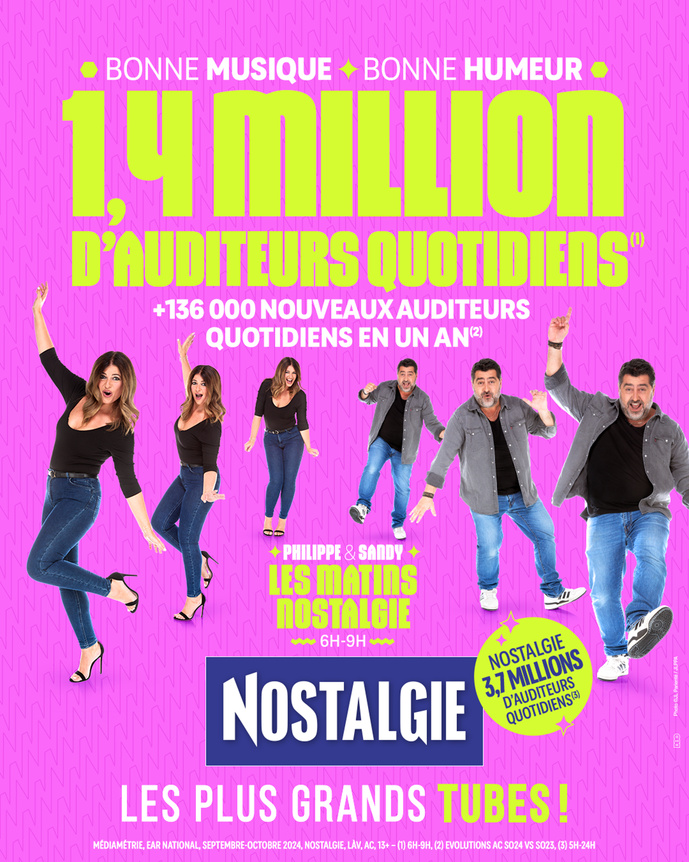 Philippe et Sandy, aux commandes de la matinales "Les Matins Nostalgie", réunissent 1.4 million d’auditeurs quotidiens, confirmant ainsi l’engouement pour une programmation axée sur les titres intemporels et les classiques français de la musique.