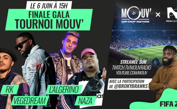 Mouv’ a organisé son premier tournoi eSport, avec Nicecactus, la première plateforme de tournois en France. Après cinq semaines de matchs sur FIFA 20 en mai, les meilleurs joueurs sont réunis avec les rappeurs ayant parrainé l'événement : RK, Vegedream, L'Algérino et Naza pour une finale de gala.